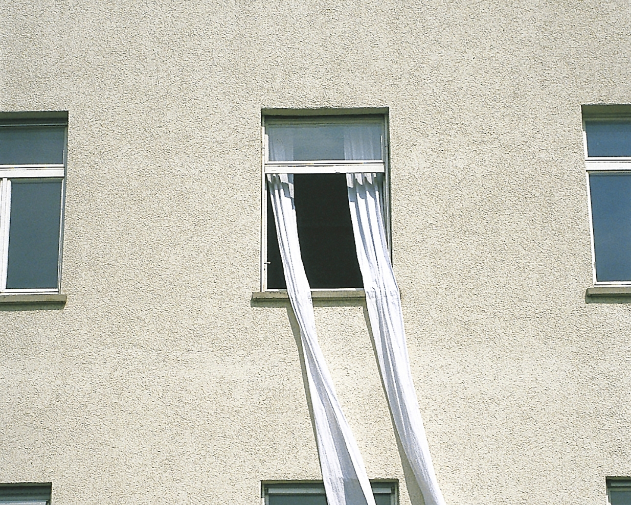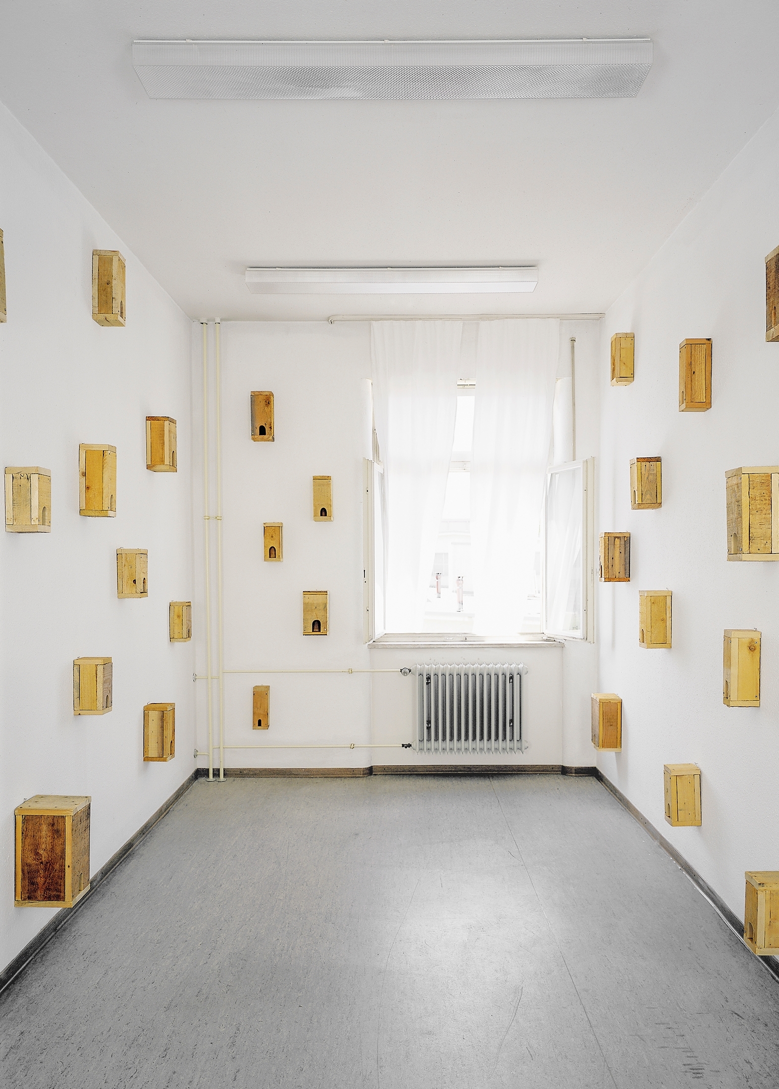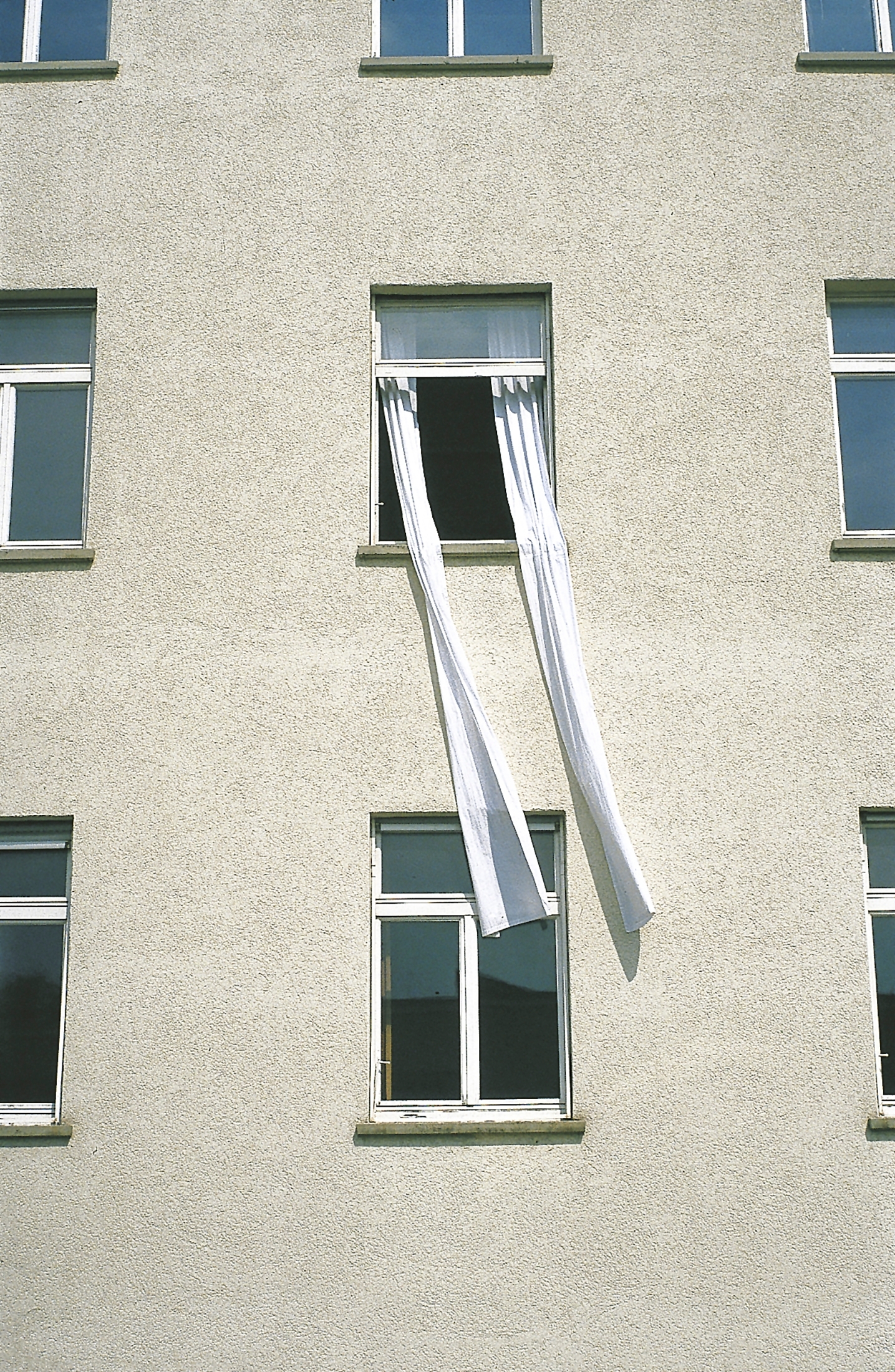 Die Vögel, Holz, Stoff, Vorhang: je 420x75 cm, 1998 Die Vögel, Holz, Stoff, Vorhang: je 420x75 cm, 1998 Regatta, Holz, Papier, 1999 Holzinstallationen, 1998 - 2000