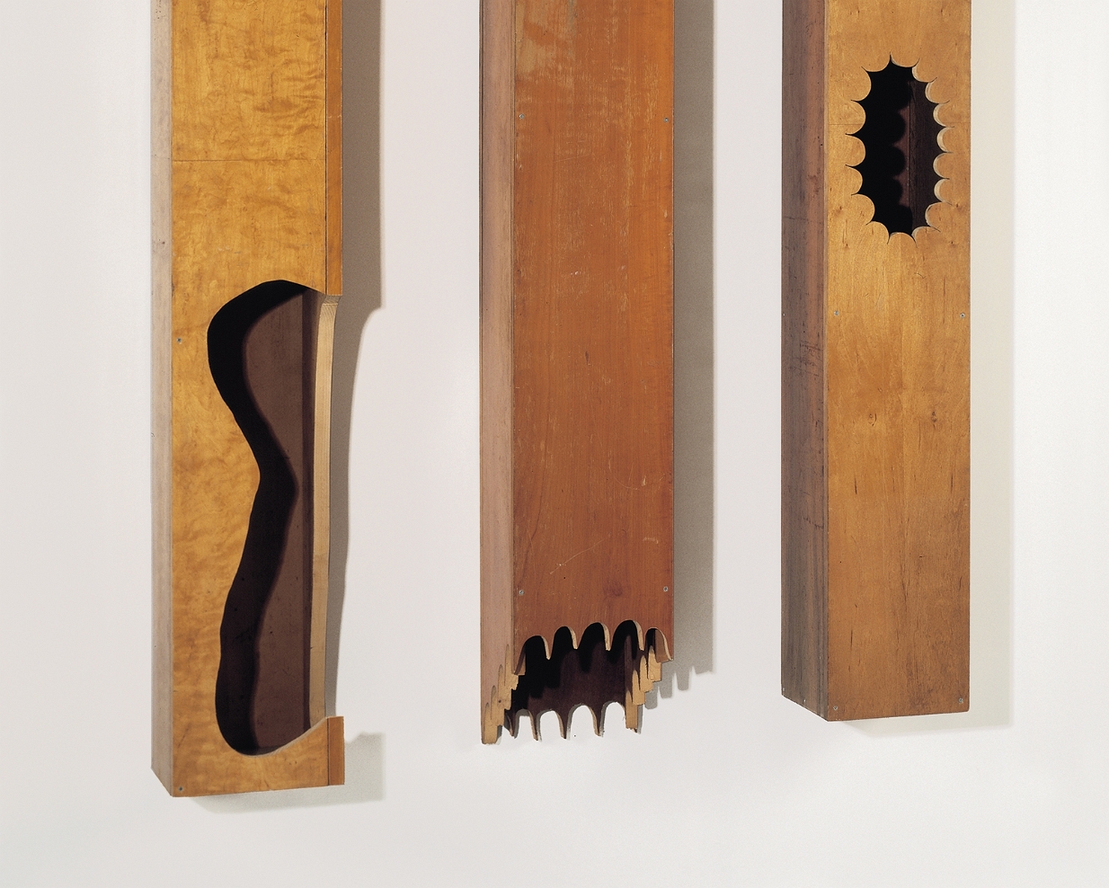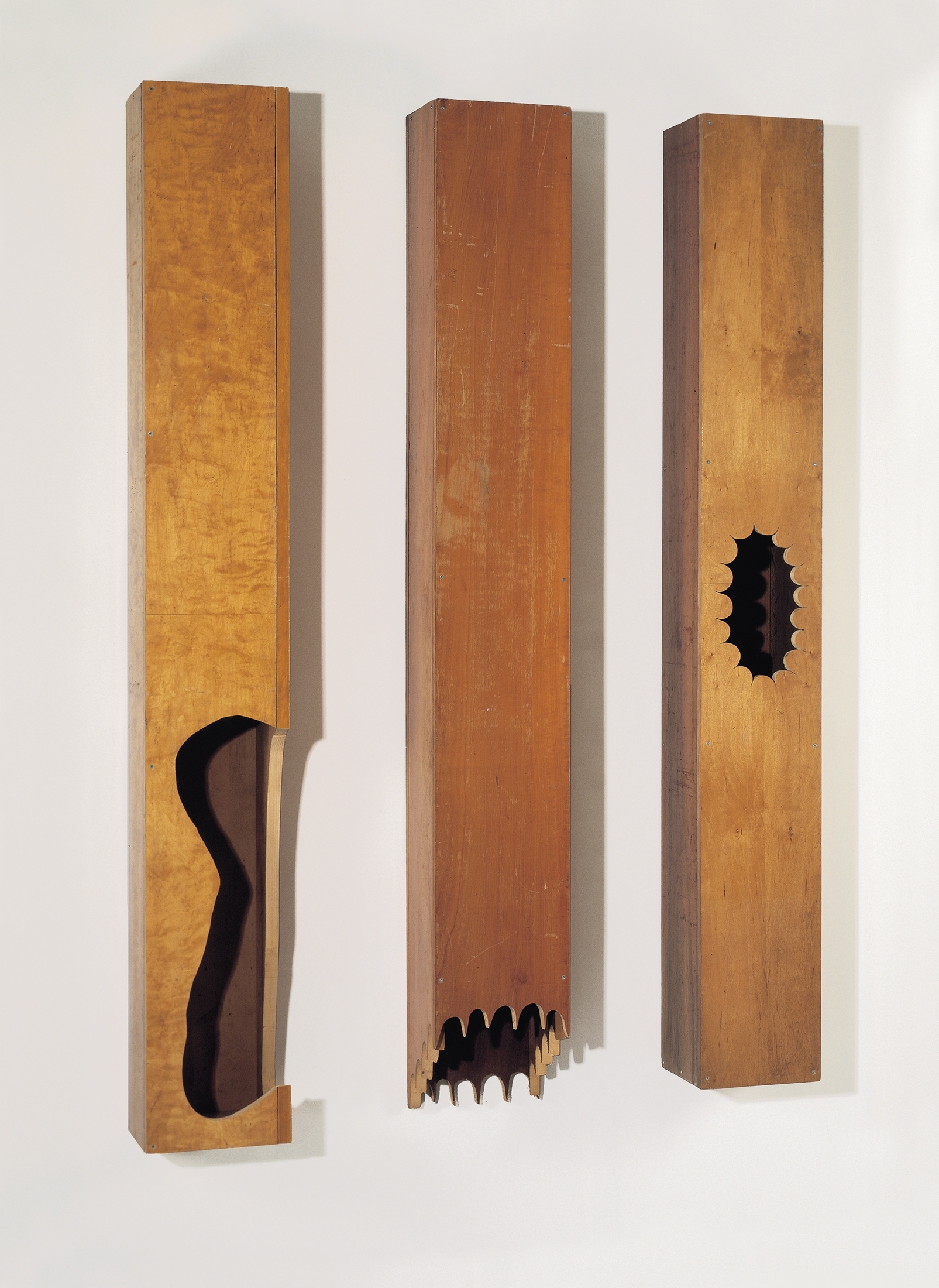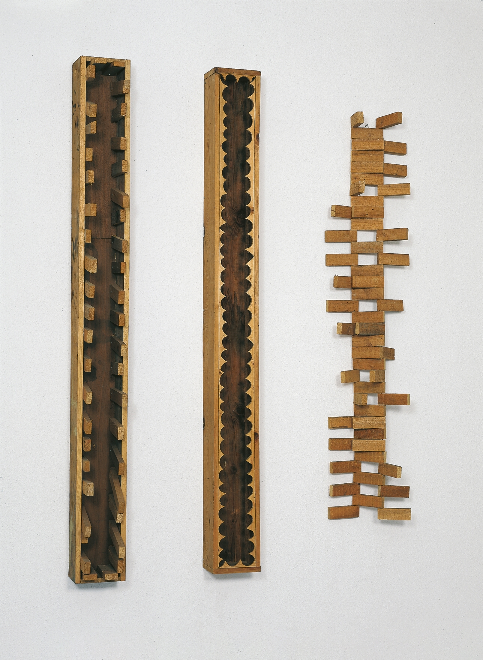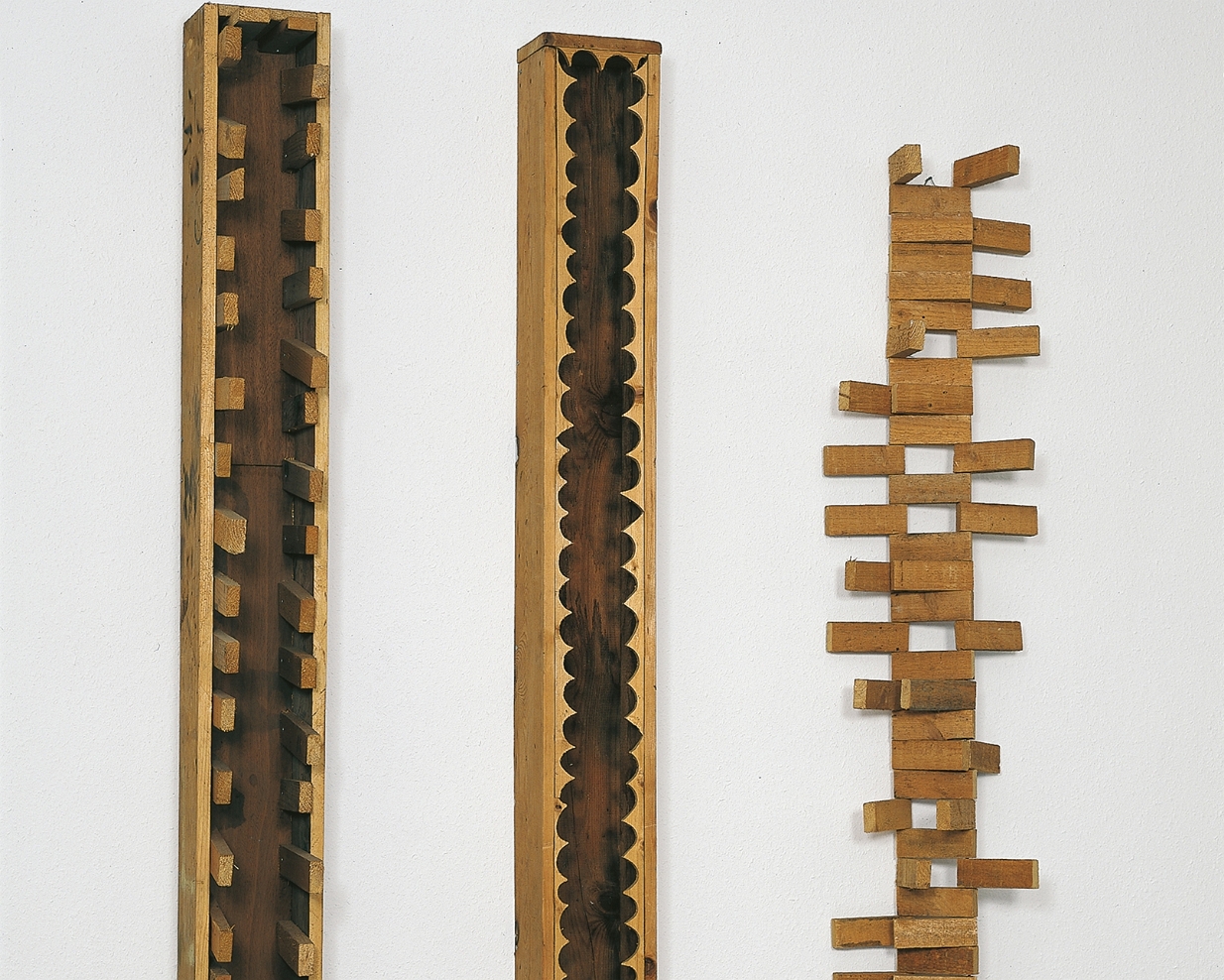 O.T., Holz, links: 197x19, 5x26 cm, 1991 - 92  O.T., Holz, links 187,5x25x24,5 cm, 1992  O.T., Holz, 177x22x22 cm, 1992 Holzskulpturen 1990 - 921996 - 2002
