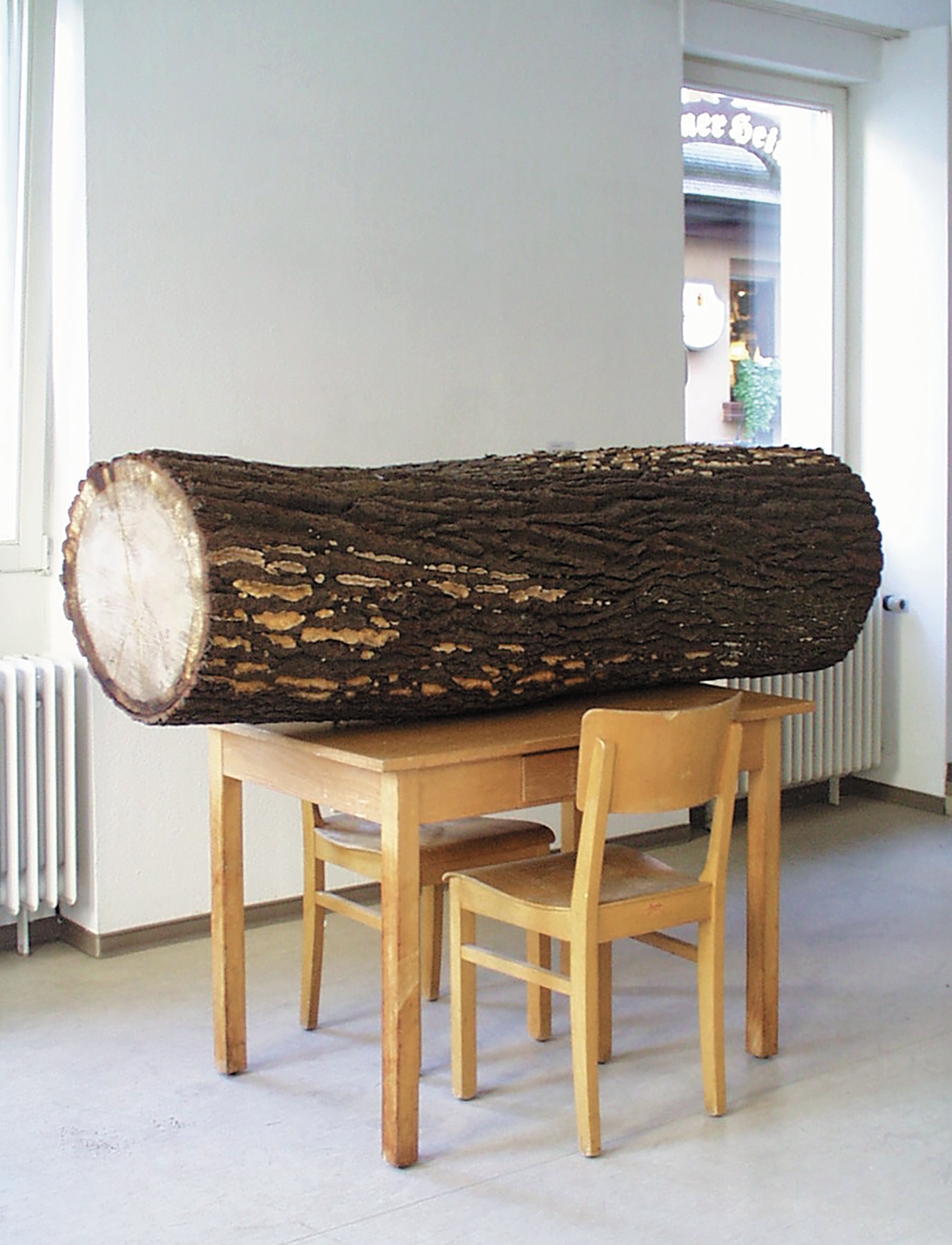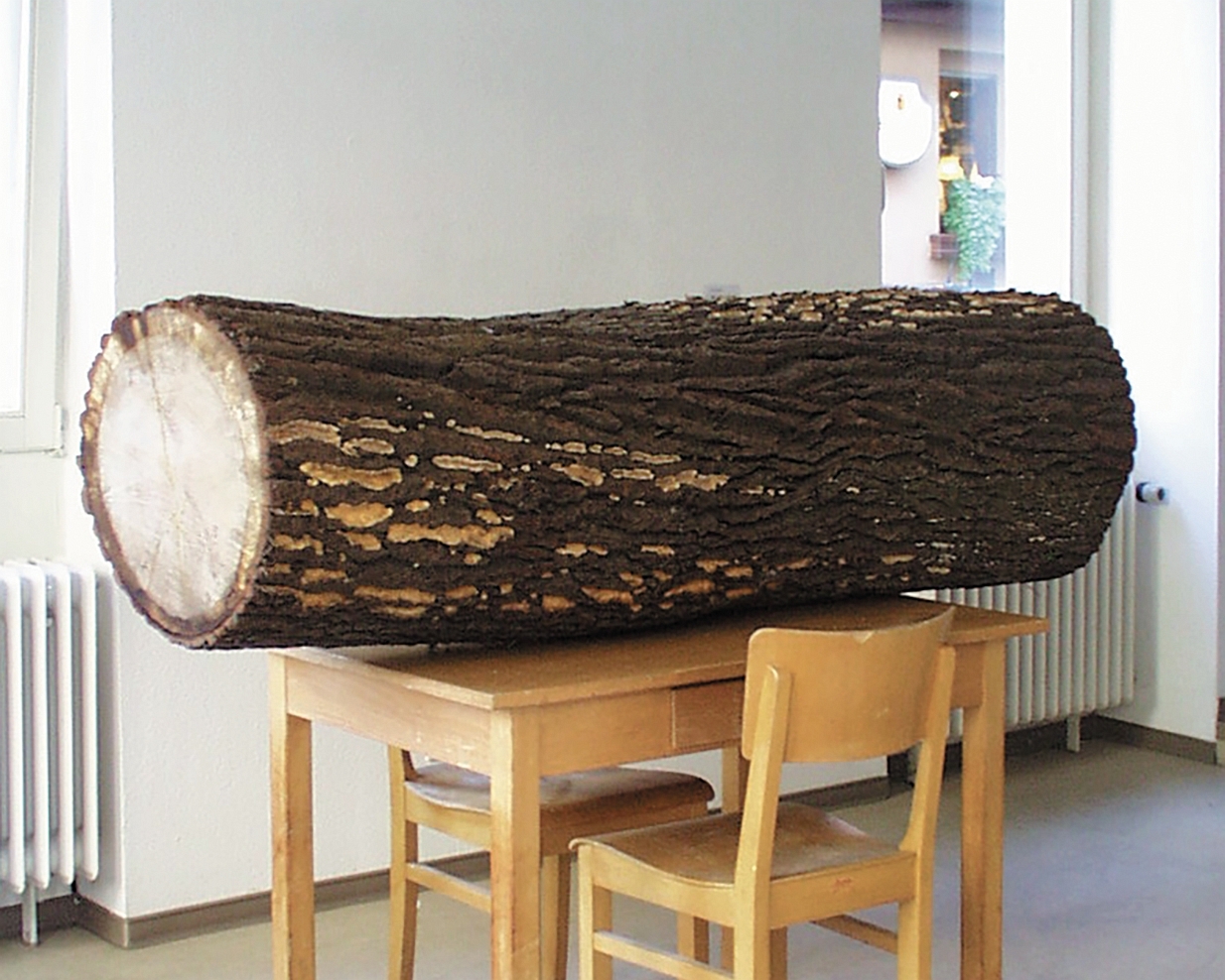 Stamm/Tisch, Holz, 130x200x150 cm, 1999   Blume, Holz, Länge: ca. 460 cm, 1999 Holzskulpturen, Fahrzeuge, 1992 - 98Selbstportrais, Holzskulpturen, 1996 - 99