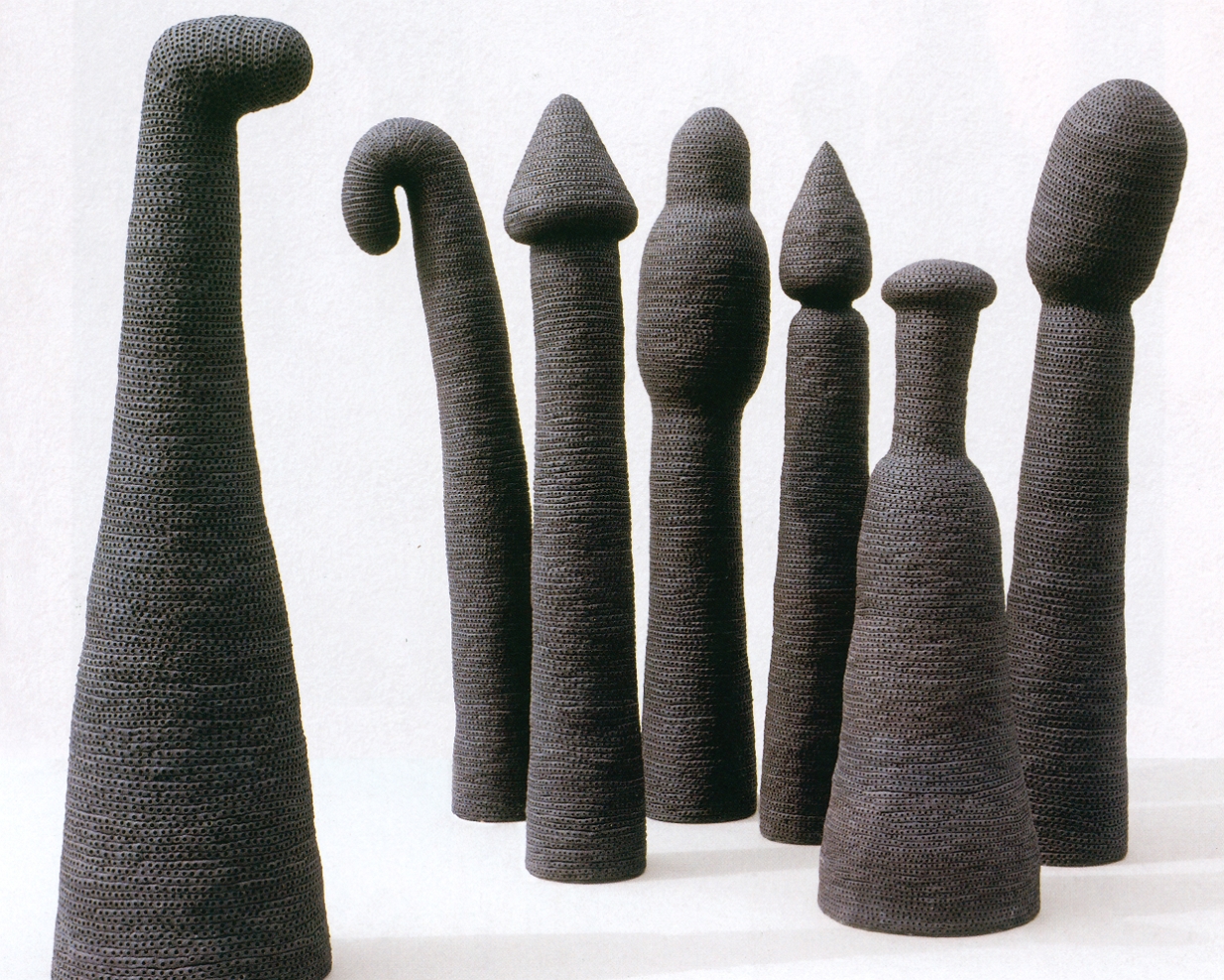 Die Fremden II, Keramik, links H 178 cm, 2001  Die Fremden I, Keramik, links: H 178 cm, 1995 Detail Keramische Skulpturen 2003Ziegelkeramik, 1997