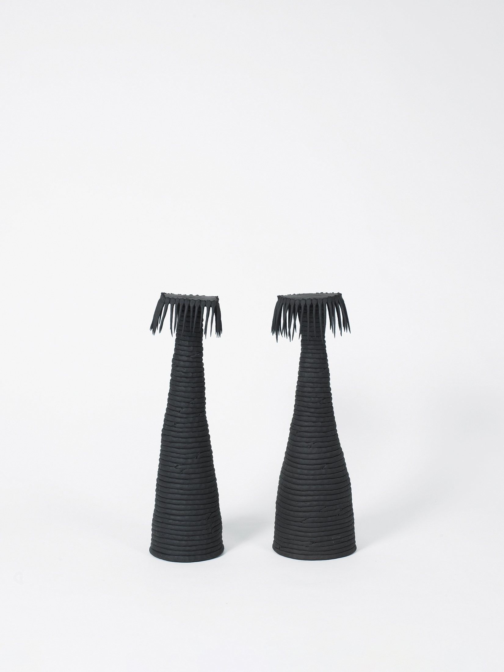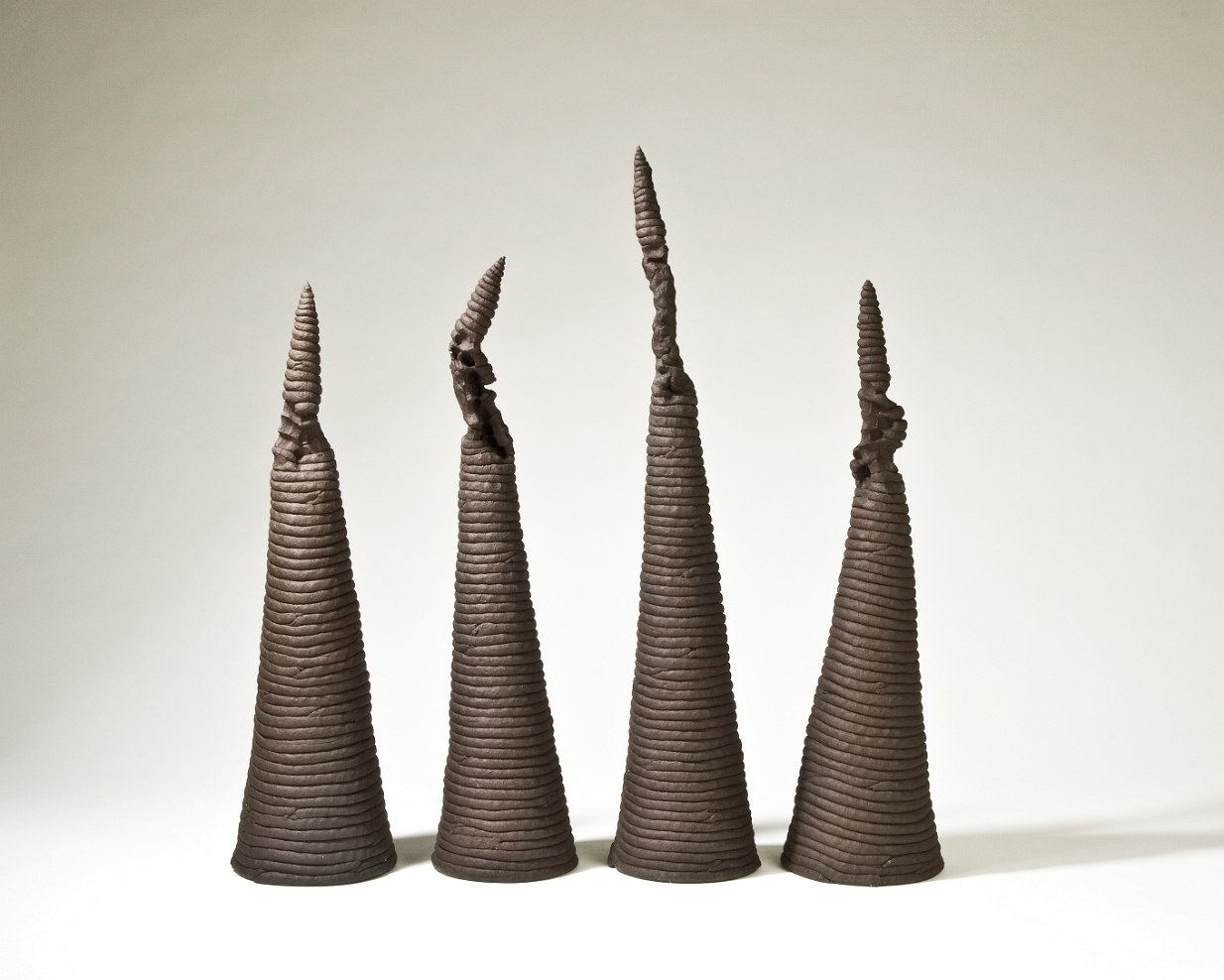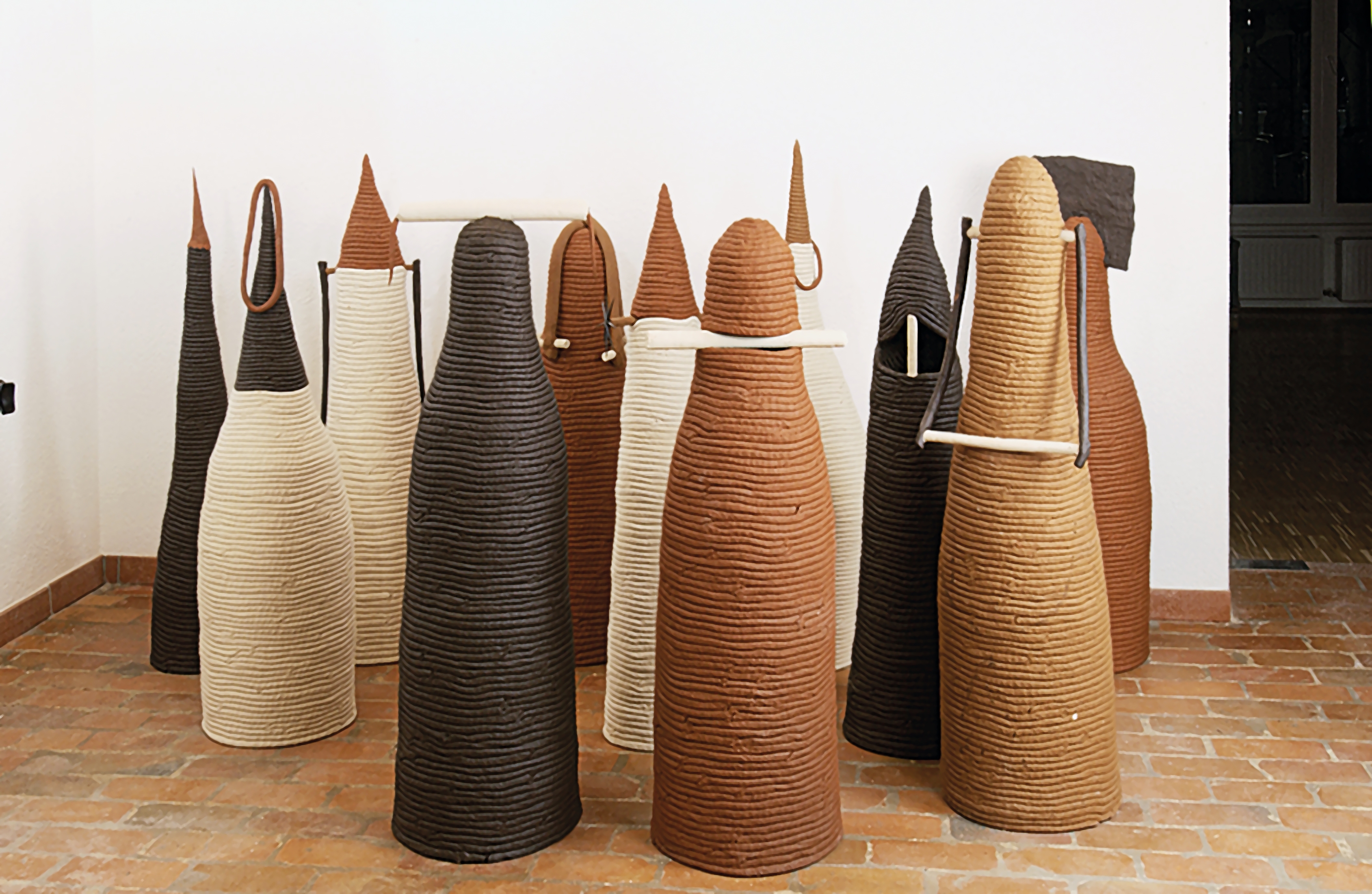 Schutztruppe I, Keramik, gebrannt, max. Höhe 146 cm, 2003  O.T., Keramik, gebrannt, max. Höhe 71 cm, 2004  Paar, Keramik gebrannt, Figur rechts: H 79 cm, 2011  Engel, Keramik gebrannt,2 Figur von rechts:H 102 cm, 2011 Hoheiten, Keramik, gebrannt, max. H 270 cm, 2012  Schutztruppe II, Keramik, gebrannt, 2004, Detail Kisten, 2005Turmfiguren, 2009 - 10