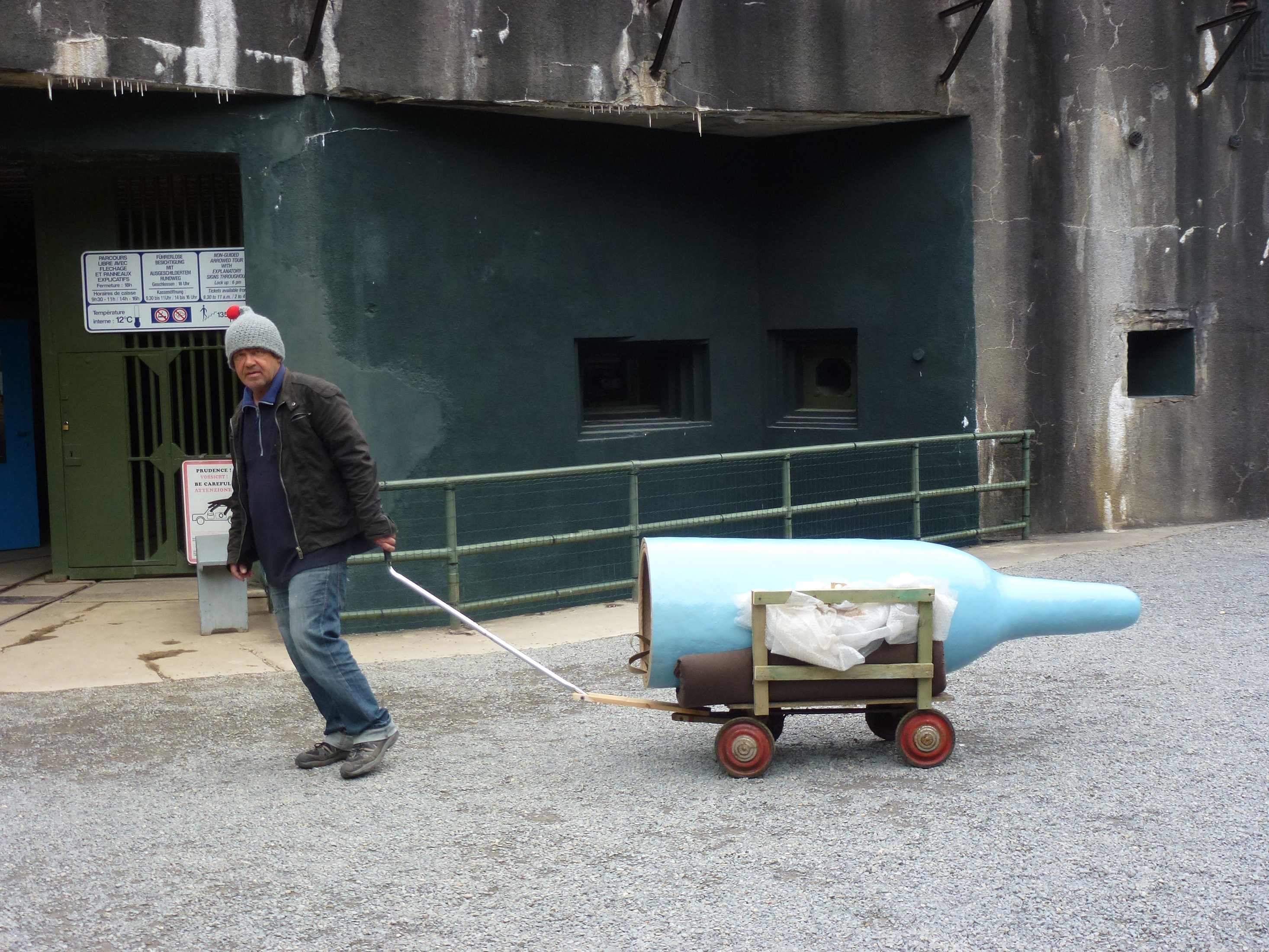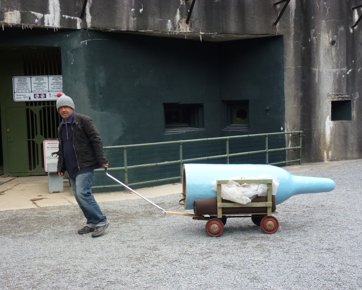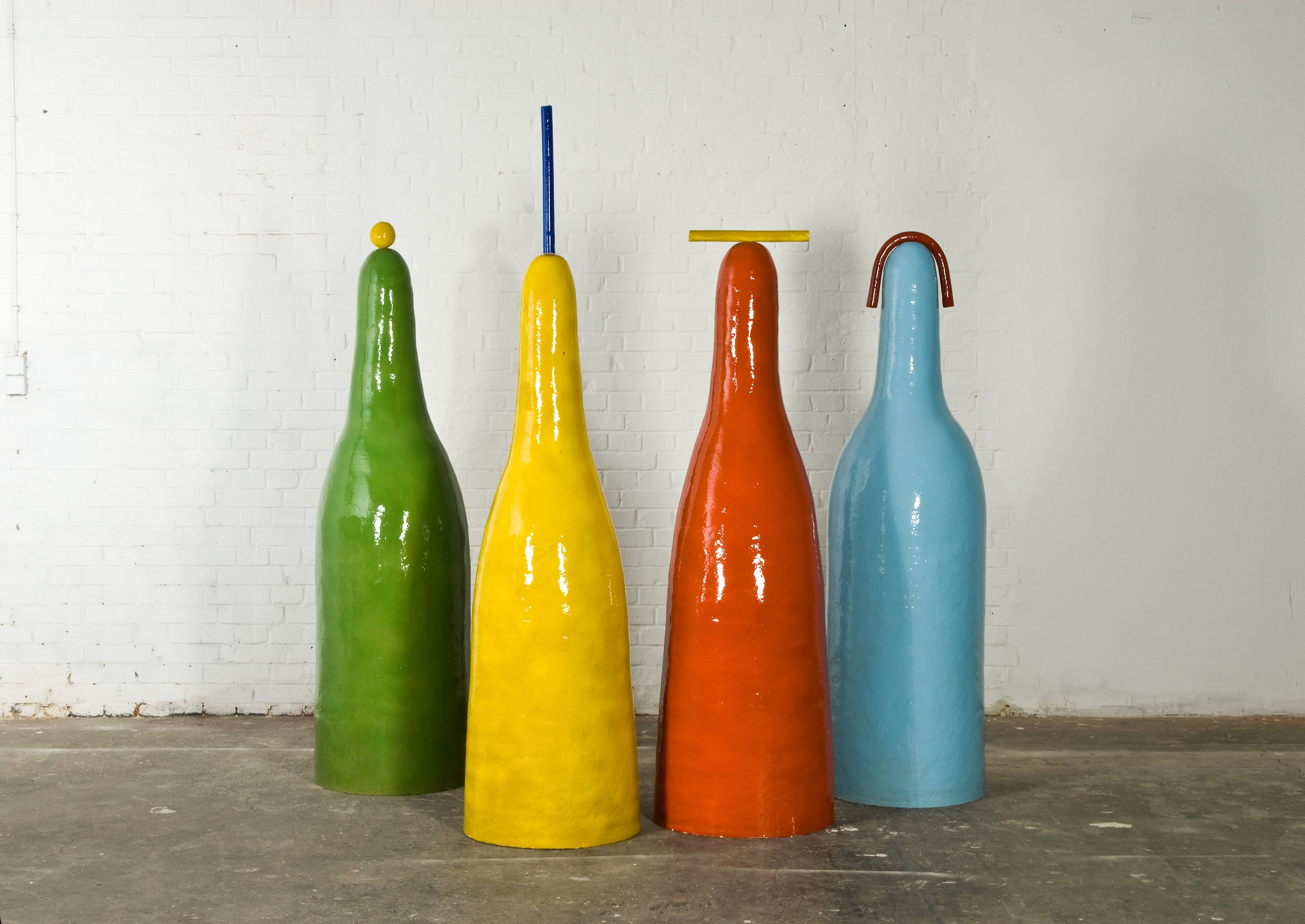 Flaschenmann und Kugelfrau, Keramik, gebrannt, H 206 cm, 2001  Die Gaukler, Keramik, glasiert u. gebrannt, max. H 224 cm, 2011,  Festung Schoenenbourg, Elsass, 2014 Krüge und Kannen, 2001Fuhrparlk III, 2000 - 2001